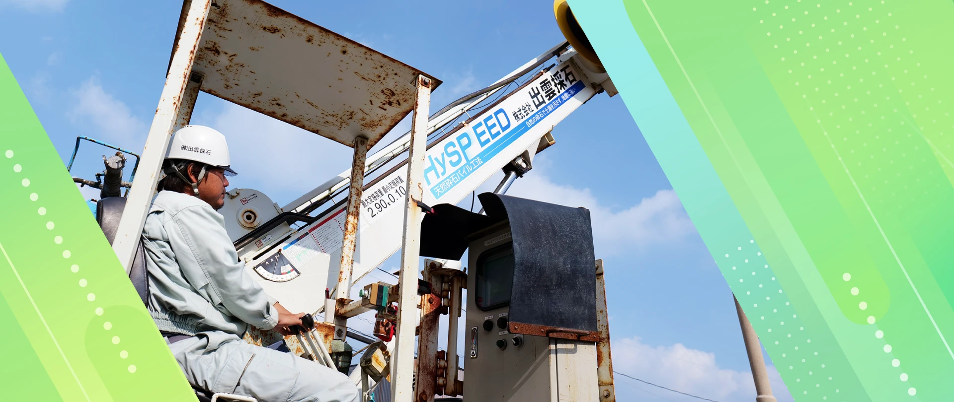 主に地盤改良工事の穴掘建柱車の運転、補助作業